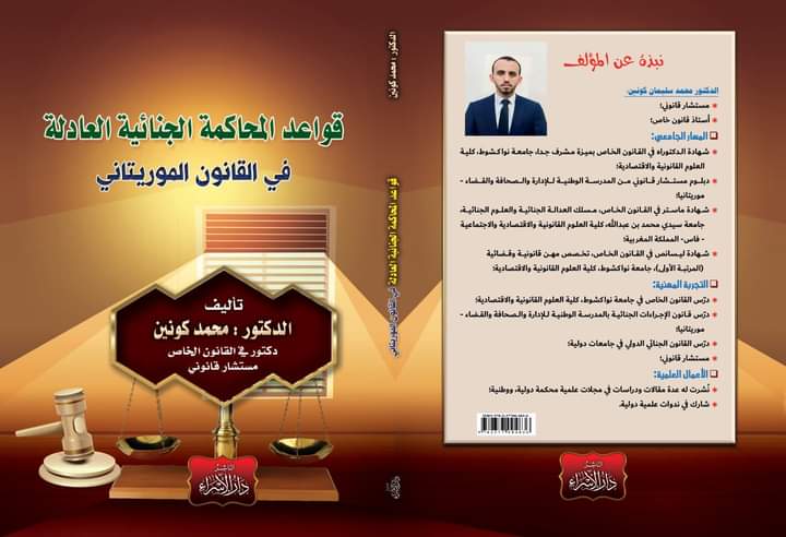 وصدر الكتاب عن دار الاسراء للنشر بجمهورية مصر العربية، في 265 صفحة، وتناول بالنقاش والتحليل النصوص القانونية الموريتانية ذات الصلة بقواعد المحاكمة الجنائية العادلة.