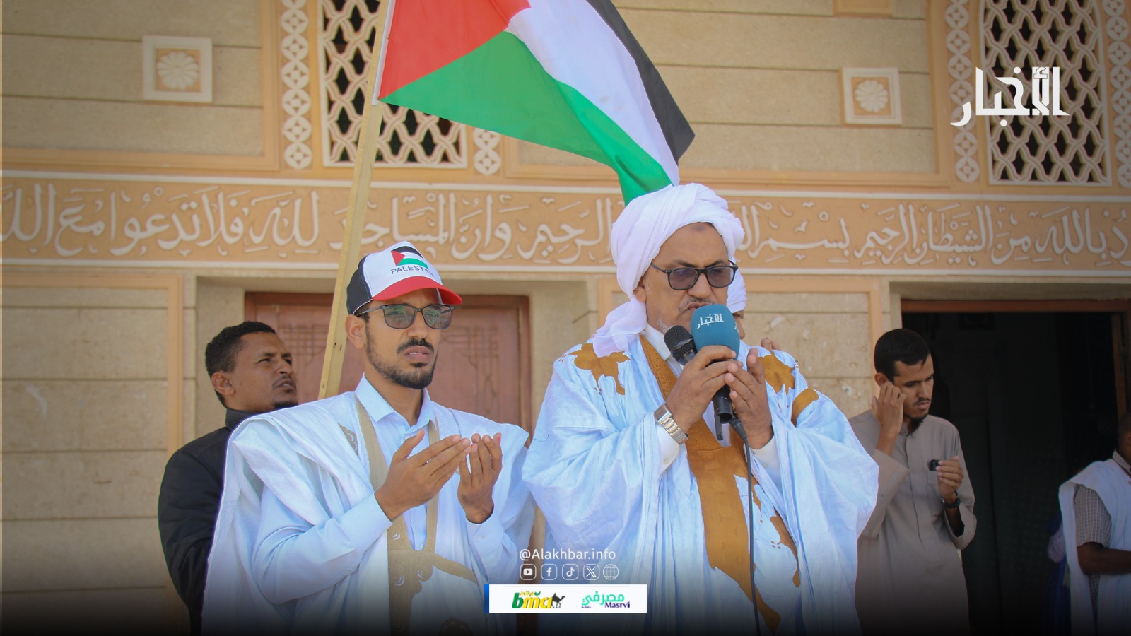 وشدد ولد بونا على أن يقوم كل فرد بدوره في نصرة وإسناد أهل غزة وألا يكون رقما عابرا بل جزءا من هذه المعركة، مضيفا أن المعركة قد تطول لكن يبقى خيار المقاومة الخيار الوحيد لتحرير الأسرى والمسرى.