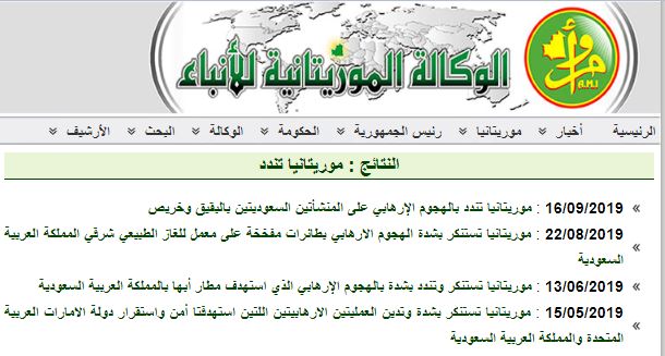 “تلقت الجمهورية الإسلامية الموريتانية، باستنكار شديد، أنباء الهجوم الإرهابي، بطائرات مفخخة دون طيار، على معمل للغاز الطبيعي بحقل الشيبة في شرق المملكة العربية السعودية.